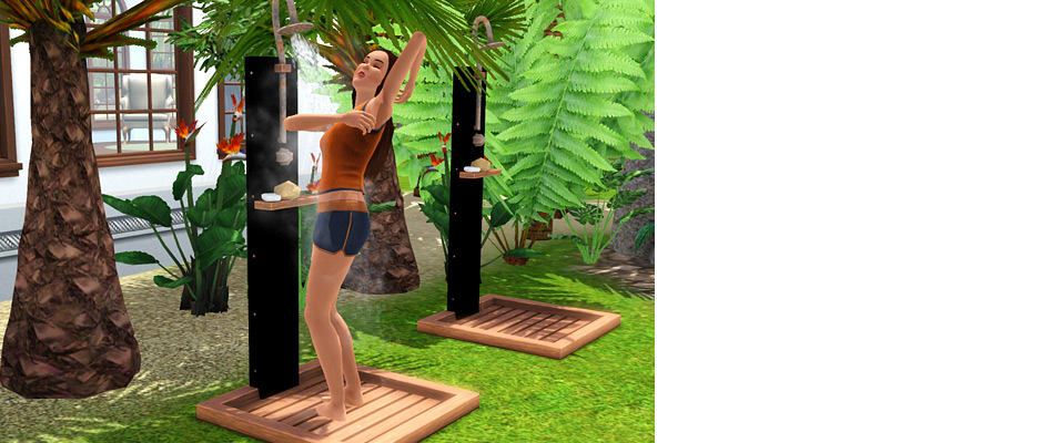 Se tomares duche ao ar livre não embacias os espelhos! É a maneira mais divertida de tomar duche e agora está disponível para compra individual na Os Sims 3 Store!